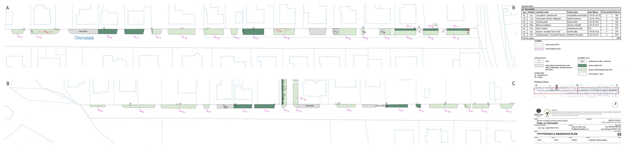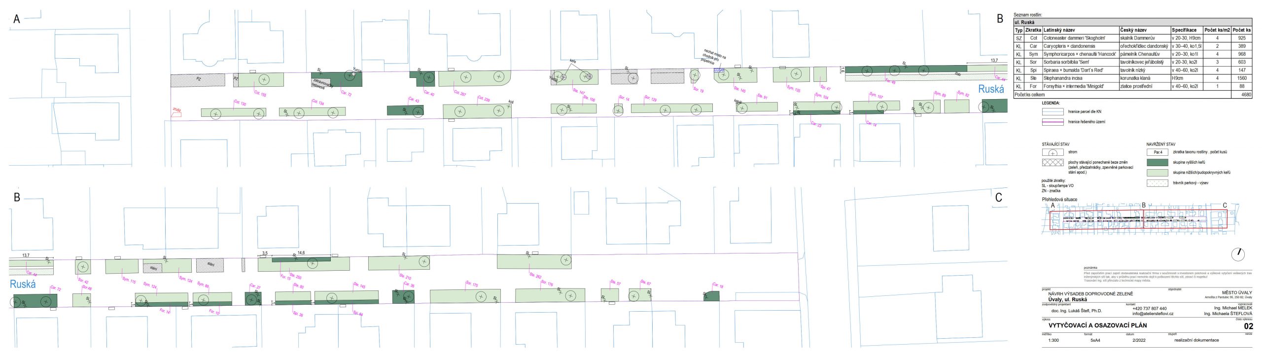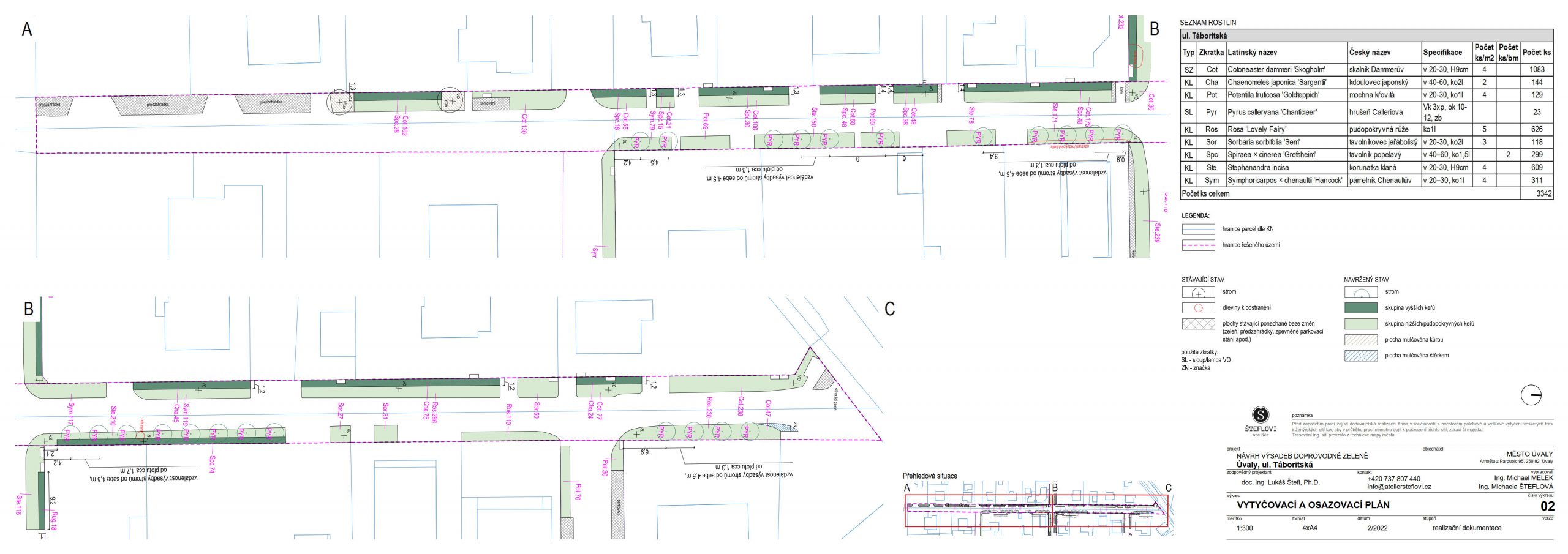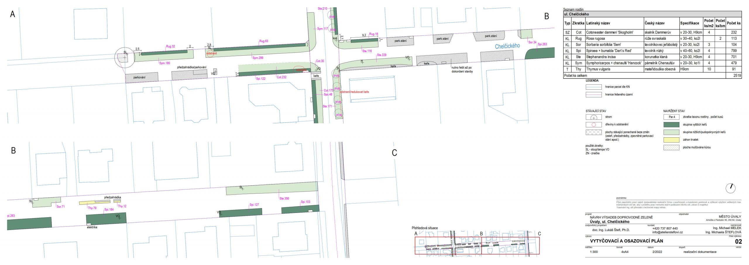 Zahradní architekt pan Doc. Ing. Lukáš Štefl, Ph.D. pro nás letos připravil, na základě požadavků města, balíček projektových dokumentací k ozelenění částí Úval – Radlická čtvrť a Slovany. Jedná se o rozsáhlou ozeleňovací akci, v celkové hodnotě 4,5 mil. Kč bez DPH. Vzhledem k tomu, že se jedná o rozměrově velké plochy, které nelze ekonomicky zrealizovat během jednoho roku, rozhodlo vedení města pro letošní rok o zkrášlení ulic Poděbradova, Jeronýmova, Táboritská, Roháčova a částečně ulice Chelčického. Sázet se bude v duchu nízkonákladové a máloúdržbové zeleně, s převahou půdopokryvných nebo nízkovzrůstných keřů, které jsou krásné nejen květy, ale i olistěním. Z biologicky málo zajímavého, ekonomicky náročného, často sečeného trávníku se nám tak stanou aktivní a živé plochy, které budou domovem pro malé živáčky a lahodící podívanou pro vaše oko. Výsadby se ujala společnost Bonsoft s.r.o., která s městem Úvaly uzavřela rámcovou smlouvu o dílo. Než však mohlo dojít k samotným zahajovacím pracím, pronásledoval nás opět neustálý nedostatek sadebního materiálu a hlavně prudký nárůst cen a jejich krátkodobá garance.