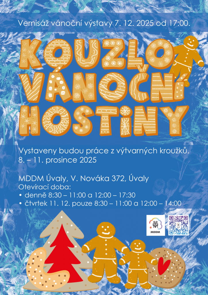 Místo: 7. 12. 2025 od 17:00 vernisáž výstavy v MDDM, V. Nováka 372, Úvaly