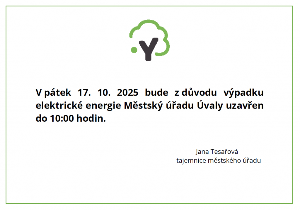 Uzavření MěÚ Úvaly 17.10.2025 do 10hodin – výpadek proudu