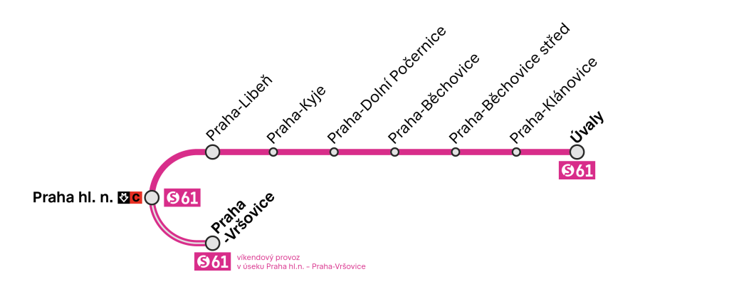 dovolujeme si Vám oznámit, že od 1.4.2025 bude v provozu vlaková linka S61 Úvaly – Praha Hl. N.- Vršovice