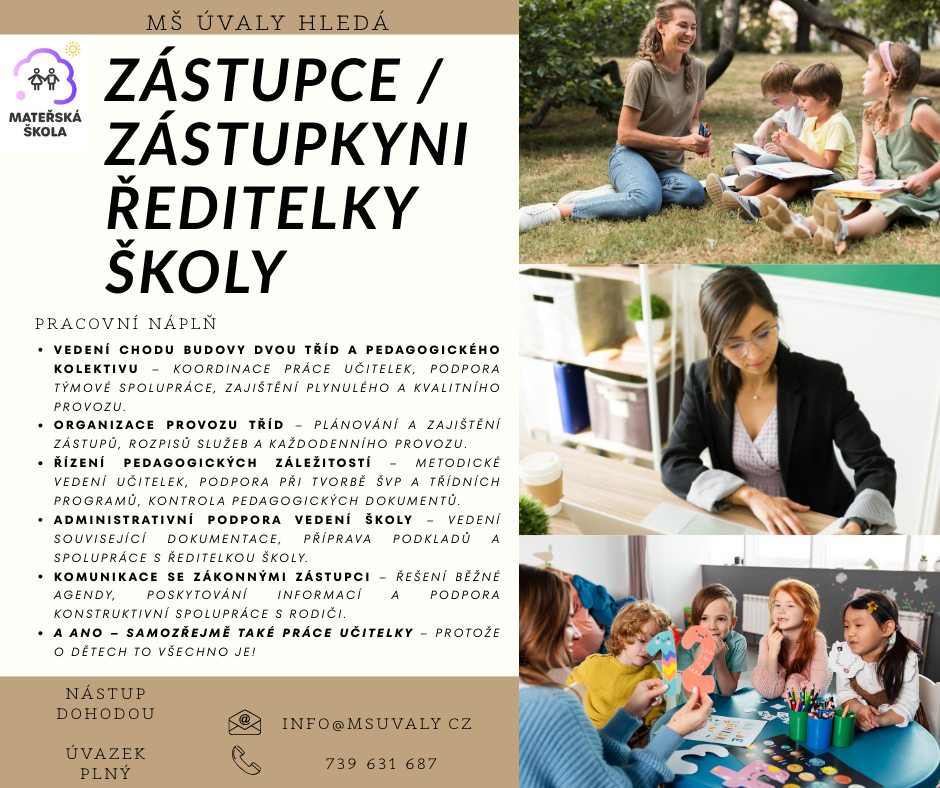 Volná pozice – MŠ Úvaly – zástupce/zástupkyně ředitelky školy