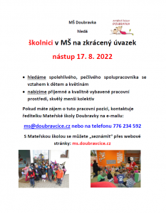 Volná pozice – školnice v MŠ Doubravka